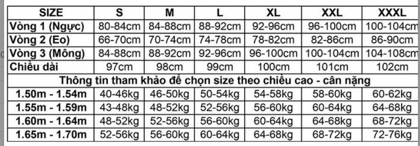 Người mẫu cao 1.6m, nặng 48kg, mặc size S